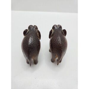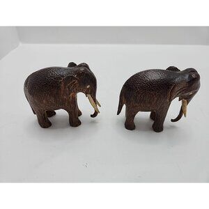 Hand Carved Wood Elephant Set Of 2 Vintage Safari Collectible Figurines 3"