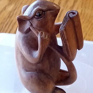 This little guy is holding onto his tail and reading a book. Signed by artist on bottom with 2 holes.