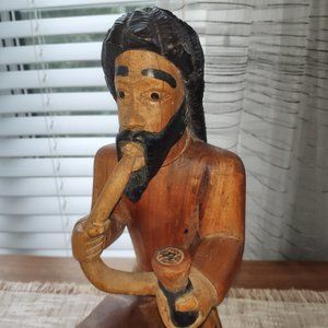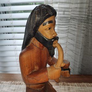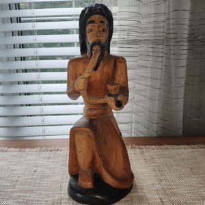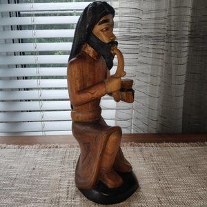 Hand Carved Wood Sculpture VTG Tall Robed Bearded Man Rastafarian Hookah 15"