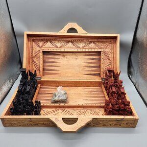 Hand Carved Wooden Chess & Backgammon Set – Bali Style Folding Board
