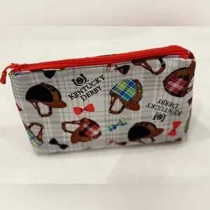 Charming pouch with a red zipper. Features a playful multicolor design. Perfect for small accessories.