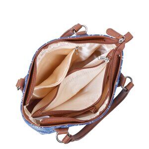 Hand Crafted Blue Printed Fabric Top Handle Handbag, Women Satchel Bag Purse