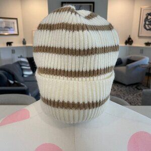 Hand Crafted Cozy Knit Ribbed Striped Toque Neutral Cream & Tan Sz OS - no tags
