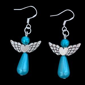 ONE PAIR Hand Crafted Earrings featuring articulating angel charms