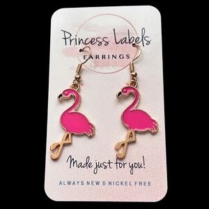 Hand Crafted Earrings Birthday Girl Flamingoes Nickel Free wires Gold Tone