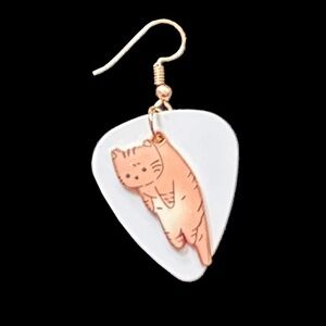 Hand Crafted Earrings Repurposed Guitar Picks Tan Tabby Cats on White