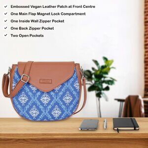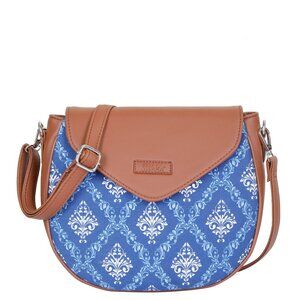 Hand Crafted Fabric Blue Print Women Crossbody Sling Bag, Messenger Bag