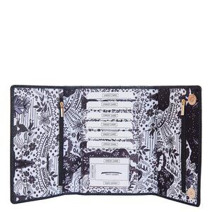 Experience refined organization with our hand crafted nylon printed trifold wallet and organizer, offering both luxury and practicality for your travel needs with leather trim.