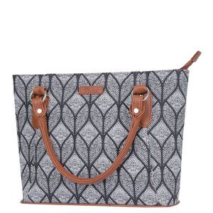 Hand Crafted Monochrome Printed Fabric Women Top Handle Handbag, Satchel Purse