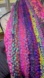 Vibrant knit scarf. Features a blend of colors. Perfect for any outfit.