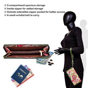 Hand Crafted Paisley Print Nylon Fabric Women Wristlet Wallets & Card Holder