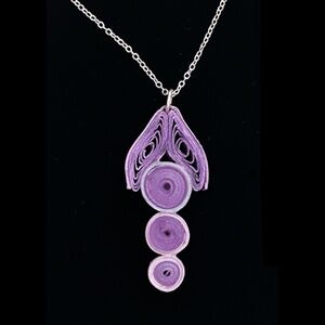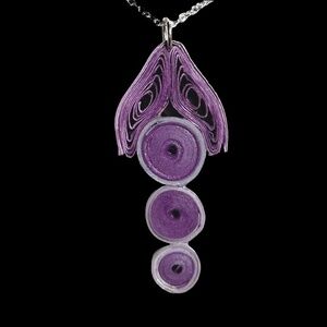 Features: Gorgeous hand crafted purple Arrow paper quill pendant, with circles streaming into an arrow head
