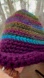 This hand crafted beanie hat showcases a cozy ribbed texture and features a vibrant striped pattern in deep purple and green. Perfect for adding a pop of color to your outfit, it combines warmth and style effortlessly.