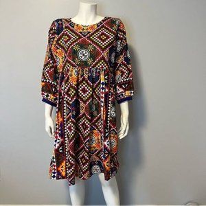 Hand Crafted Quilted Patchwork Printed Dress Bold Bright color One size