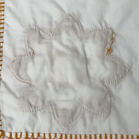 Hand Crafted Square Cotton Crocheted Edges & Flower Handkerchief 19” x 19”