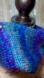 Chic knit scarf with vibrant blue and purple tones. Adds flair to any ensemble. Soft and warm.
