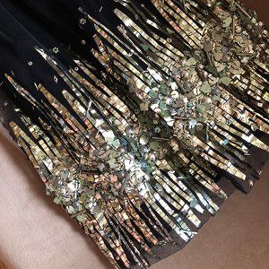 A truly special dress with intricate hand applied adornment on the bottom. Delicate spaghetti straps and twisted tule detailing along the top. Never worn.