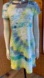 Hand Dyed Short Sleeve Fitted Dress White Blue Green Size 6