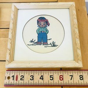 Hand Embroidered Petit Point Indigenous Boy & Girl Framed Burlington Art Shop