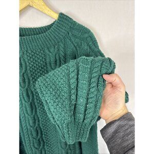 Hand Knit Cable Wool Fisherman Sweater Green Chunky Knit Men’s XL