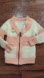 Warm knit cardigan in pink and cream with a stylish collar and front zipper.