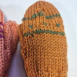 Hand Knit Mittens Lot of 2 Childrens 7" Long