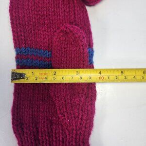 Hand Knit Mittens Lot of 3 Womens 8.5" - 10" Long Pink with Blue