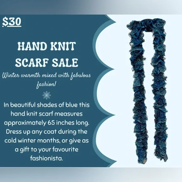 Hand knit ruffle scarf. Made by the seller. Measures approximately 65” long.