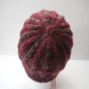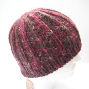 Hand Knitted Hat Toque Adult Size - M-(L) Acrylic Burgundy Unisex Color Blue-019