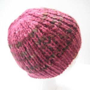 Hand Knitted Hat Toque Adult Size - S-XS Wool/Acrylic Color Burgundy - 013
