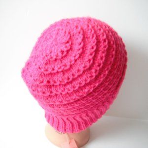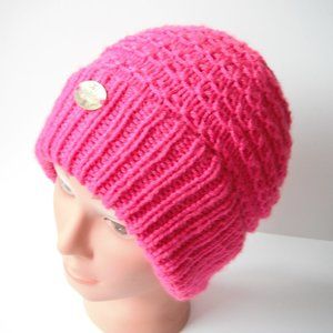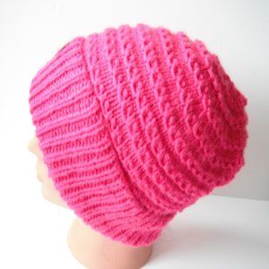 Hand Knitted Hat Toque Size L-(M) Acrylic Pink - 037 Hand knit by me
