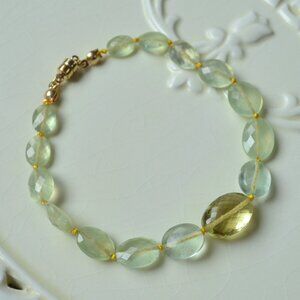 Hand Knotted Gemstone Bracelet with Lemon Quartz and Prehnite