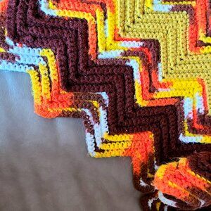 Hand Made Crochet Throw Afghan Blanket with Bright Yellow Orange Brown Colors.