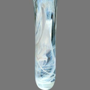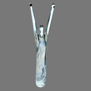 Handmade hot sculpted art glass Celebration Figure in clear glass with white milky swirls as designed by Susan Gottselig, made by Nicole Tremblay.