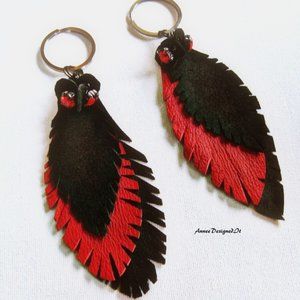 Featuring 3 layers precisely cut to look like feathers in genuine soft black and red leather