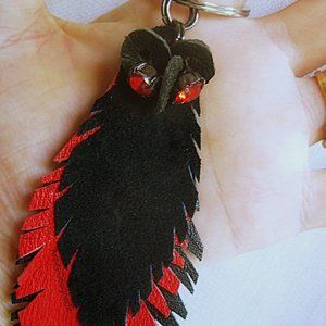 A beautiful key chain that resembles an OWL with bright red eyes !