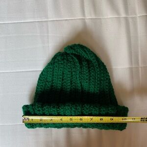 Beautiful green crocheted toque. Hand made. Measurements in photos!