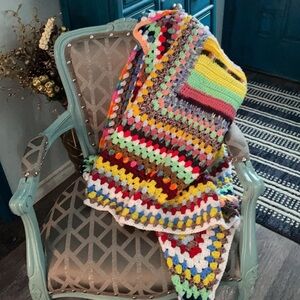 In really great condition, edges are slightly wavy from beginner crochet artist.