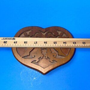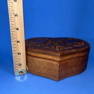 Hand Made Wooden Heart Shaped Puzzle Trinket Box Carved Floral Design Cover
