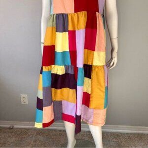 The perfect addition to your summer wardrobe! Made from a lightweight and breathable fabric, this dress is designed to keep you cool and comfortable all day long. The eye-catching multi-color patchwork adds a fun and vibrant touch to your outfit, making it perfect for any summer occasion. Whether you're headed to a casual brunch with friends or a beach getaway, this dress is sure to make a statement.