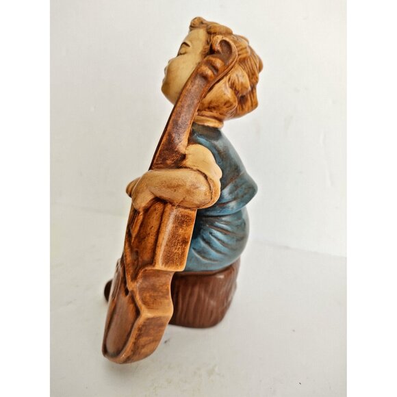 Hand Painted Ceramic 8" Figurine Boy Playing Bass signed Nancy Hart
