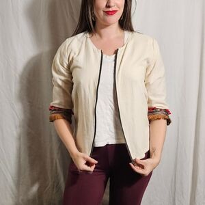Absolutely stunning hand painted linen jacket from Not A Boring Clothes. It's lightweight and well made, with a breathtaking painting on the back.
