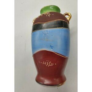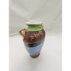 Gorgeous hand painted and gold gilded vase or jug. Nice two handle design. Colors are brilliant, floral design with bird...please do review our photos..
