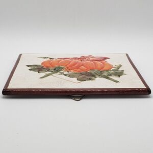 Hand Painted Orange Pumpkins Red and Green Leaves Ceramic 3D Tile Wall Decor