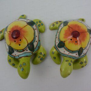 Hand Painted Sea Turtle Salt & Pepper Set by Blue Sky Clayworks LIKE NEW