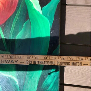 Gorgeous pink tulips, stunning realistic looking flowers. Hand painted and signed by the artist. It’s got a sort of clear shine over it which just makes it look super cool and crisp.