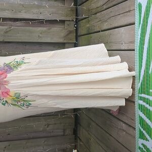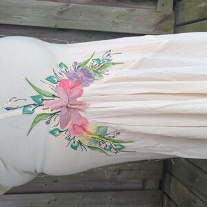 Stunning Hand Crafted floral skirt. The sides are longer than the front and back. Beautiful painted and applique flowers at the sides below each hip.