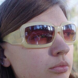 Beige yellowish hand polished frames sun glasses UV 400,in good condition.