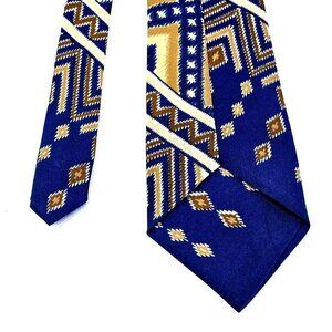 Hand Work Thai Silk Blue Gold GEO Men's Neck Tie Made In Thailand L56" x W3.25"