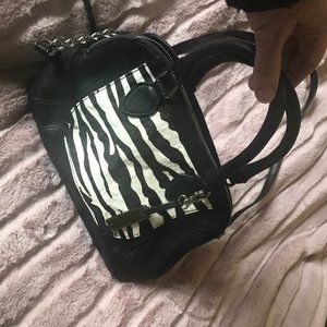 GEnuine high quality leather with Zebra fur on front. Used once, VERY Clean, Silver accents